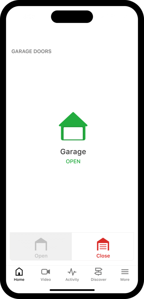 Smart garage door control allows you to open and close your garage door remotely through an app on your smartphone. Smart garage doors have the ability to send notifications and alerts if the door is left open or if it was closed. Our systems are compatible with Liftmaster openers and some select Chamberlain and Genie garage door openers.